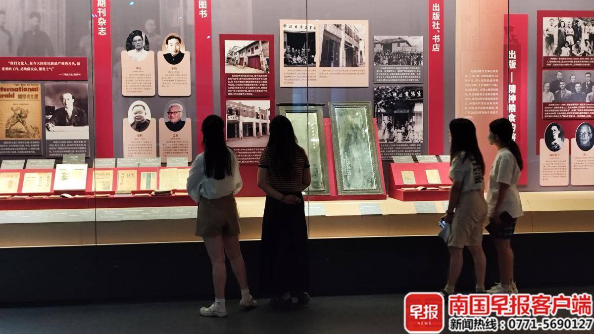 展陈文物涵盖了报纸、刊物、标语、美术作品、教育文献等类型,对应新闻、出版、艺术、教育四大领域。展厅通过复原八路军桂林办事处、广西省立艺术馆、生活书店、岩洞学校等多处与广西文化抗战息息相关的场景,AI赋能动态展现抗战时期的版画与漫画元素,引入成熟的纪录片、官媒系列报道、老电影片段等多元展示手段,多维度拓宽展览内涵。